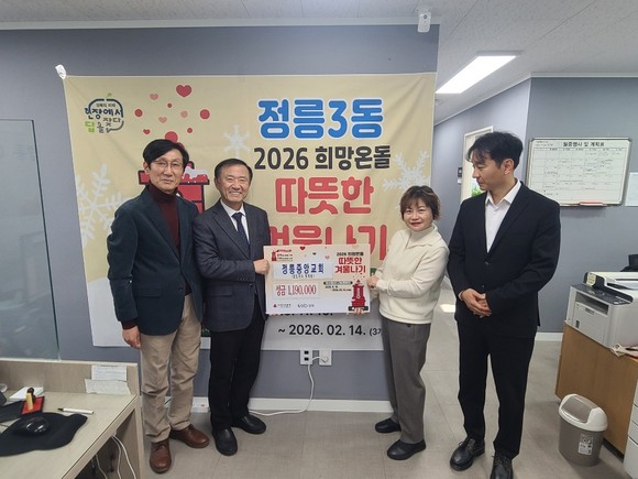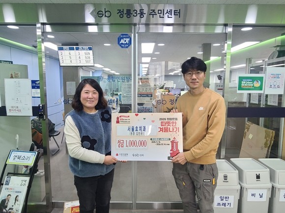서울 성북구 정릉3동주민센터는 2026년 연초부터 지역 내 기관·단체로부터 ‘따뜻한 겨울나기‘ 성금 총 369만원을 전달받았다고 13일 밝혔다.