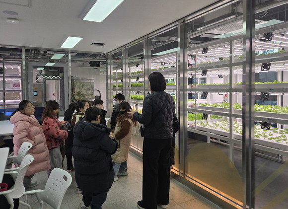 ‘2025년 신나는 방학-가보고 싶은 교실’에서 아이들이 강북구 스마트팜 체험 활동을 하고 있다.
