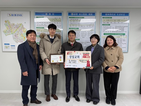 이와 함께 성일교회(담임목사 이영배)도 ‘2026 희망온돌 따뜻한 겨울나기’ 캠페인 기간을 맞아 관내 저소득층과 복지 사각지대 이웃을 위해 백미 1,000kg과 라면 70박스를 기부했다.