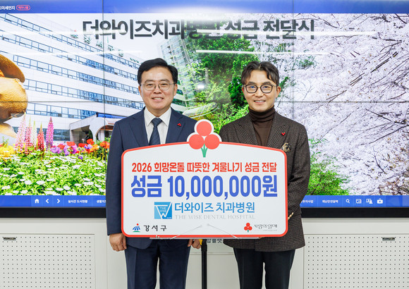 서울 강서구(구청장 진교훈)는 16일(금) 화곡동 더와이즈치과병원(대표원장 임세웅)으로부터 이웃돕기 성금 1천만 원을 전달받았다.