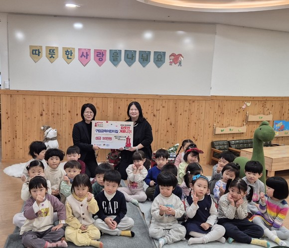 지난 해 11월 말부터 올해 1월까지 두달 간 이어진 이번 '2026 희망온돌 따뜻한 겨울나기' 기부릴레이로는 ▲구립 래미안리버젠어린이집(원장 강효진) 원아가 직접 만든 김치를 판매한 플리마켓 수익금, ▲구립 극동그린어린이집(원장 김은영) 원아들이 모은 성금, ▲구립 연꽃어린이집(원장 백지숙) 전 등 먹거리를 판매한 바자회 수익금, ▲구립 금옥어린이집(원장 방진아) 원아가 직접 만든 팥죽을 판매한 수익금으로 이루어졌다.