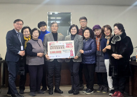 서울 서대문구 남가좌1동(동장 김정현)은 관내 DMC파크뷰자이 아파트 입주자대표회의가 최근 취약계층 이웃을 위한 ‘2026 희망온돌 따뜻한 겨울나기’ 성금 500만 원을 기탁해 주위에 귀감이 됐다고 20일 밝혔다.