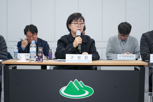 이순희 강북구청장(가운데)이 지난해 2월 개최된 ‘주거지정비 기본계획 중간보고회’에서 발언하고 있는 모습