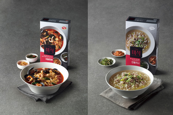 이에 식품업계는 고품질 제품을 전면에 내세우며 시장 공략에 속도를 내고 있다. 하림 The미식(더미식)의 요리면 제품인 ‘해물짬뽕’은 20시간 이상 우려낸 돈골과 해물 육수를 배합한 국물과 고춧가루, 마늘, 양파를 기름에 볶아 만든 양념장에 오징어, 홍합, 목이버섯, 죽순 등 해물 건더기를 더한 제품이다. 지역 별미를 재현한 ‘안동국시’는 사골, 소고기, 양지 등을 고아낸 육수에 감자 전분을 넣어 뽑아낸 건면을 사용했다.