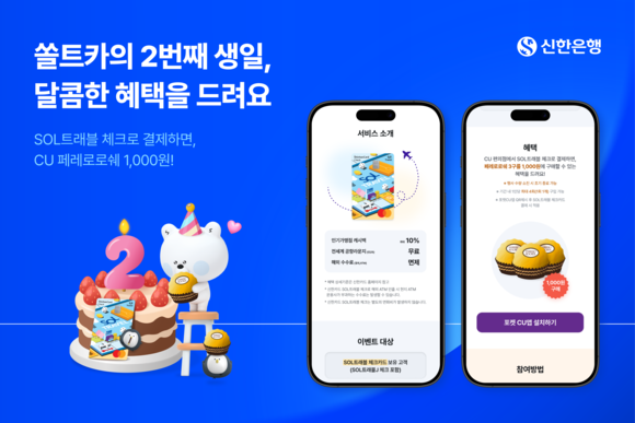 신한은행(은행장 정상혁)은 2월 1일부터 13일까지 SOL트래블 체크카드 출시 2주년을 맞아 CU편의점과 함께 고객 감사 이벤트를 진행한다고 30일 밝혔다.