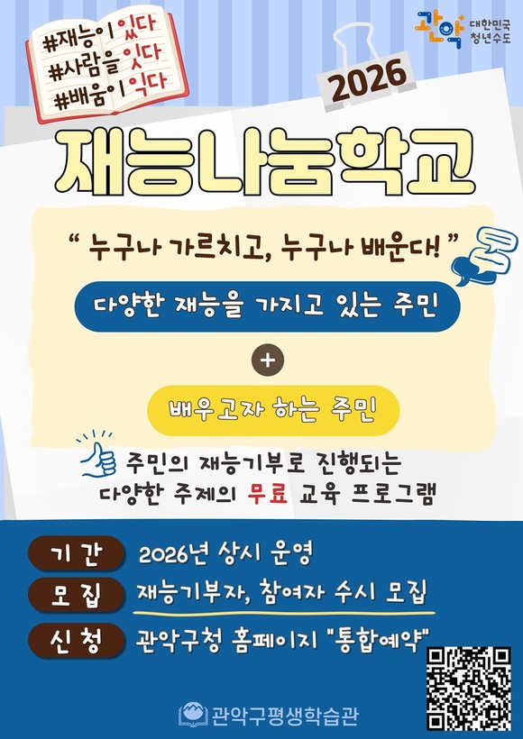 관악구 2026년 재능나눔학교 홍보 포스터. 이미지=관악구청