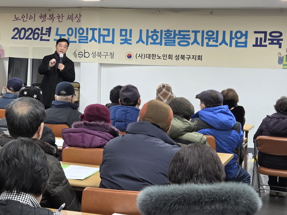 서울 성북구(구청장 이승로) 대한노인회 성북구지회가 지난 2월 2일과 4일, 총 2회에 걸쳐 대한노인회 성북구지회 3층 강당에서 ‘2026년 어르신 일자리 및 사회활동지원사업 참여자 발대식 및 안전교육’을 진행했다.