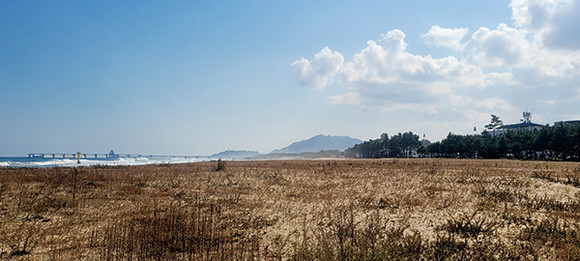 依依煙樹似雲屯. 沙軟風輕十里原. 島影正同雲影杳. 松濤長伴海濤喧. 煙開鯨口波聲壯. 日射鼇頭曉色暾. 汀畔白鷗閑似我. 忘機相對弄春暄.