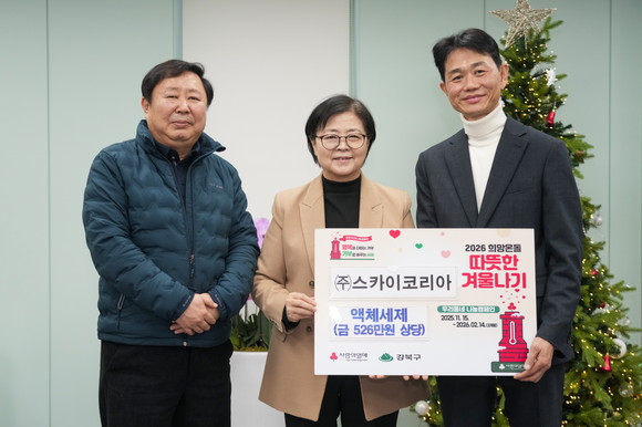 서울 강북구(구청장 이순희)는 (주)스카이코리아와 함께 지난 4일 ‘2026 희망온돌 따뜻한 겨울나기’ 성품 전달식을 개최했다고 밝혔다.