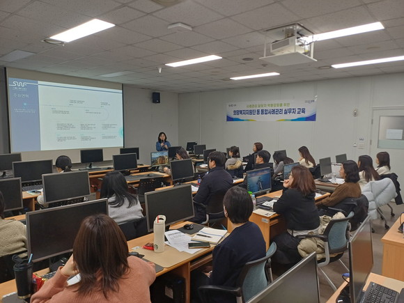 이번 교육은 성북구 복지정책과가 관내 20개 동 주민센터 사례관리 업무담당자 등 30여 명을 대상으로 진행했다. 통합사례관리 전반의 운영 방향과 희망복지지원단의 역할, 통합사례관리의 개념과 과정, 업무 매뉴얼 등을 중심으로 동 담당자의 실무역량 강화에 초점을 맞췄다.