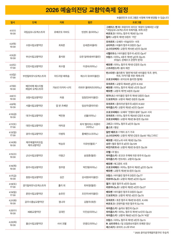 2026 예술의전당 교향악축제 일정표. 이미지=에술의전당
