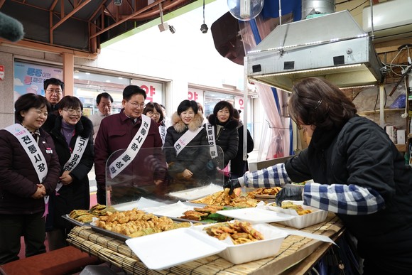 이번 방문은 명절을 맞아 전통시장에 활기를 보태고, 장보기로 마련한 물품을 이웃과 나누기 위해 마련됐다