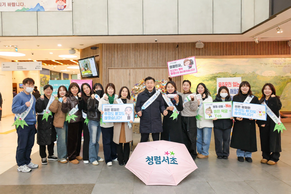 전성수 서초구청장은 “설 명절을 앞두고 실시한 청렴 캠페인을 통해 공정하고 투명한 공직 문화가 확산되길 바란다”며, “앞으로도 부정부패 없는 ‘청렴 1등 도시 서초‘를 만들기 위해 최선을 다하겠다”고 전했다.