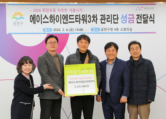 지난 6일에는 에이스하이엔드타워3차 지식산업센터 관리단(회장 김영남)이 관내 취약계층을 위해 성금 500만 원을 기부했다. 성금 전달식에는 김영남 에이스하이엔드타워3차 지식산업센터 관리단 회장, 임원 등 7여 명이 참석했다.