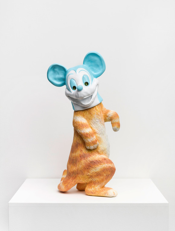 개념미술가 김홍석의 신작 〈A Villain Oliver〉(2026)는 우리가 익숙하게 학습해온 개념들이 통상적으로 작동하지 않는 상황을 연출하며, 이렇듯 해체되고 뒤엉킨 상태를 통해 관람객에게 친숙하면서도 낯선 장면을 제시한다. 캐릭터의 얼굴에 고양이 몸을 한 조각은 문제의 캐릭터가 고양이의 털옷을 입은 것인지 혹은 고양이가 캐릭터의 탈을 쓴 것인지 분간하기 어렵다. 실재와 허구, 정상과 비정상, 옳고 그름이라는 대립항이 혼재된 이 상태는 어느 범주에도 속하지 않는 진정한 현대성, 즉 보편적 개념에 구속되지 않은 자유로움을 지향한다.