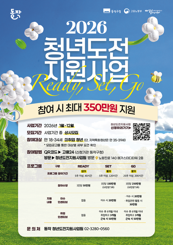 서울 동작구(구청장 박일하)가 고용노동부 주관 공모사업인 '2026년 청년도전 지원사업'에 선정돼 참여자를 모집한다고 밝혔다.