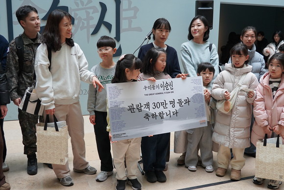 특별전 ‘우리들의 이순신’ 관람객 30만 명 돌파를 축하하는 관람객 모습. 사진=국립중앙박물관