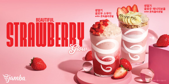 이번 신제품은 ‘딸기 한 잔으로 완성하는 건강한 뷰티 루틴(Beautiful Strawberry Glow)’을 주제로 딸기 콜라겐펄을 더한 제품이다. 해초 성분으로 만들어진 딸기 콜라겐펄은 피부 탄력 유지에 도움을 주는 콜라겐과 원활한 장 활동을 돕는 식이섬유를 함유하고 있다는 설명이다.