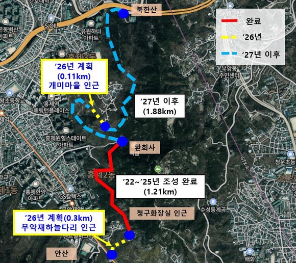 내년 이후에는 환희사에서 북한산 방향으로 이어지는 잔여 구간 1.88km를 마무리한다는 계획이다.