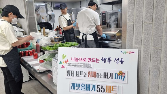 행사 당일에는 황제 셰프를 포함한 요리사 3명이 조리 기구와 재료를 직접 세팅하고, 시설 내 조리실에서 현장 조리한 수제버거 세트가 즉석에서 아이들의 저녁 식사로 제공되었다. 아동 및 종사자들과 설 명절 인사를 온 해당 시설을 퇴소한 자립준비 청년들이 특별한 음식을 함께 나누며 소통하는 시간이 마련됐다.