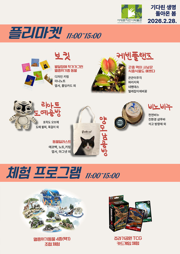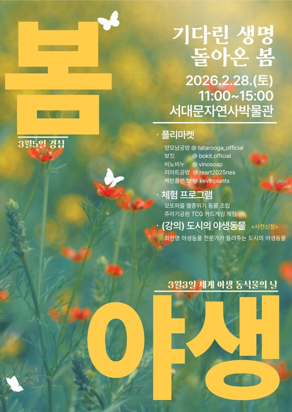 서대문자연사박물관이 2월 28일 오전 11시부터 오후 3시까지 ‘기다린 생명, 다시 돌아온 봄’ 행사를 개최한다.