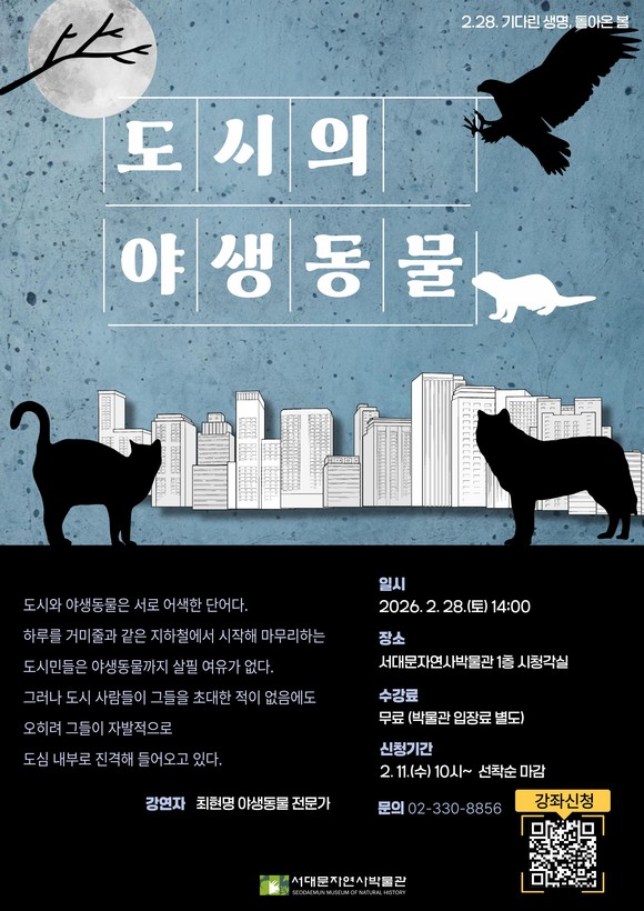 이날 오후 2시부터는 야생동물 전문가 최현명 강사의 특별 강연 ‘도시의 야생동물’이 열린다. 사전 참여 신청한 70명을 대상으로 서울의 야생동물 실태와 서식지 현황, 도시 야생동물 증가 원인, 공존을 위한 태도 등에 관한 심도 있는 이야기를 나눈다.
