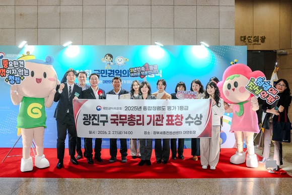 서울 광진구(구청장 김경호)는 2월 27일 국민권익위원회가 주관한 제14회 국민권익의 날 기념식에서 자치단체 중 유일하게 종합청렴도 평가 유공 국무총리 기관표창을 수상했다.