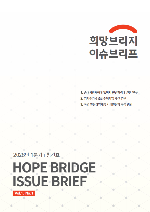 희망브리지 전국재해구호협회(회장 임채청)가 정책 전문 간행물 ‘이슈브리프’ 창간호를 발간했다고 10일 밝혔다.