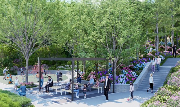 아울러 아이부터 어르신까지 다양한 계층의 이용을 고려한 맞춤형 공간 구성에 중점을 뒀다. 특히 ▲짙은 녹음과 맑은 공기를 즐길 수 있는 쉼터 ‘풍경마루’와 ‘힐링마당’ ▲야외 운동기구가 있는 ‘활력마당’과 ‘건강마당’ ▲다양한 여가 활동을 즐길 수 있는 다목적 ‘잔디마당’ ▲자연 속 어린이 놀이시설을 갖춘 ‘놀이마당’ ▲계절별 초화류가 있는 테마정원과 수국원 등을 조성해 주민들이 다채로운 여가와 휴식 환경을 누릴 것으로 구는 기대한다.