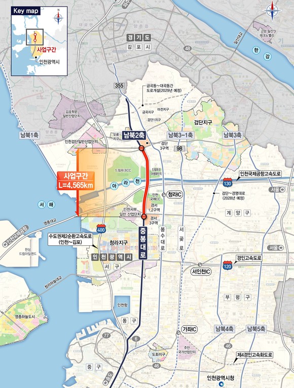인천시가 서부권 핵심 간선도로망 구축을 위해 추진하는 사업으로, 지속적인 북부권역 개발에 따른 지역 교통난 해소를 목표로 하고 있다.