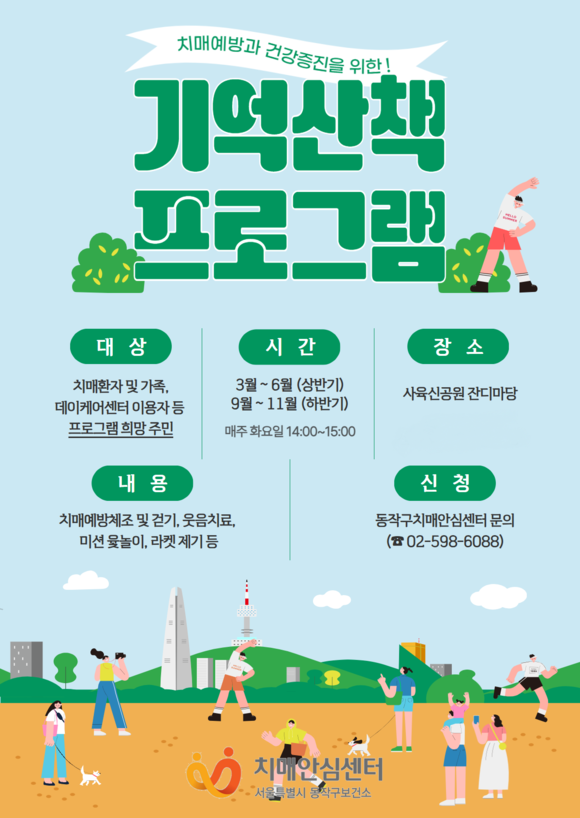 서울 동작구(구청장 박일하)는 구민들의 치매 예방과 건강증진을 위해 걷기 기반 통합 건강관리 프로젝트 ‘기억산책’을 운영한다고 밝혔다.