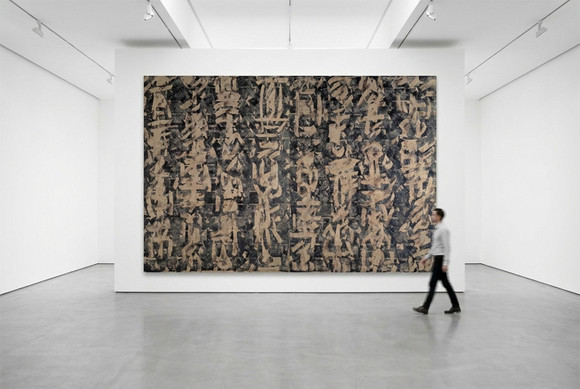 1990년대에는 한자 서체를 도입하며 회화의 새로운 전환점을 마련했다. 이는 어린 시절 인왕산에서 본 암각화 서체에서 받은 인상과 붓글씨 경험을 바탕으로, 서화일치(書畵一致)의 회화적 탐구로 이어졌다. ‘정신일도 하사불성’과 같은 문구들이 자유롭고 유동적인 호흡 아래 화면에 쓰이며, 이는 단순한 텍스트 전달이 아닌 조형적 표현으로 기능한다. 이 시기 작품은 붓질을 직조하듯 쌓아 올리는 밑작업을 거친 후, 나이프로 서체를 긁어내는 방식으로 이뤄진다.
