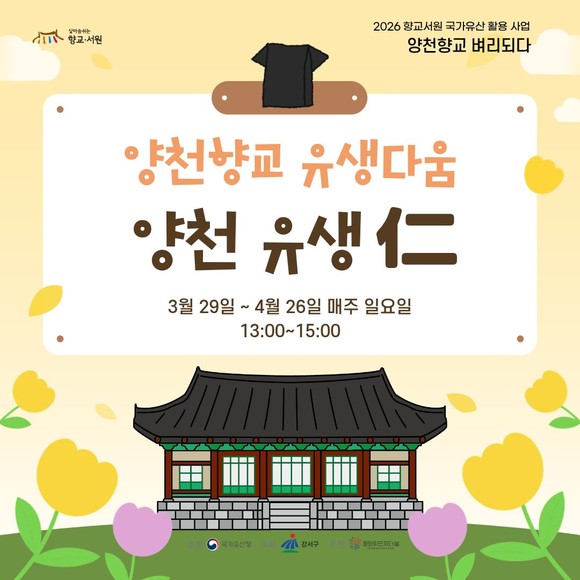 서울 강서구(구청장 진교훈)는 서울 유일의 향교인 양천향교에서 3월부터 11월까지 ‘2026년 향교·서원 국가 유산 활용사업’을 진행한다.