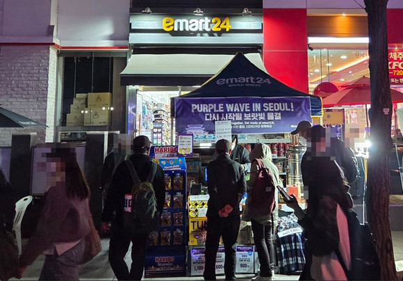 22일 GS리테일이 운영하는 편의점 GS25가 광화문 인근 점포 5개 매장을 분석한 결과, 직전 동요일(14일) 대비 매출이 233.1% 신장했으며, 객수 역시 181.2% 증가한 것으로 나타났다. 특히, 공연장 이동에 가장 밀접한 점포의 경우 매출이 최대 378.4%까지 상승했다.