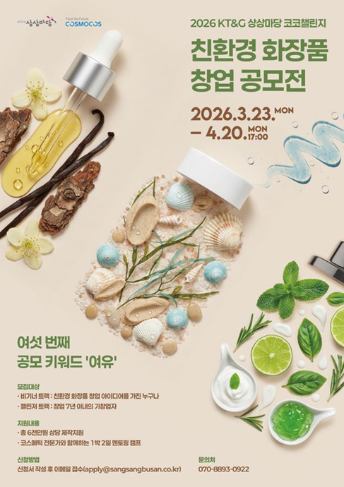 KT&G 상상마당이 ‘2026 KT&G 상상마당 코코챌린지(Korea Cosmetics Challenge)’ 공모를 이달 23일부터 다음달 20일까지 진행한다고 밝혔다.