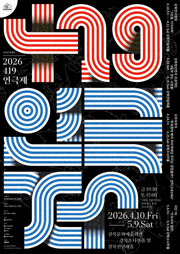 서울 강북문화재단(대표이사 서강석)은 오는 4월 10일부터 5월 9일까지 강북문화예술회관 소나무홀과 진달래홀, 야외 공간에서 ‘2026 <419연극제>’를 선보인다고 밝혔다.