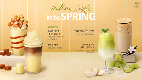 커피빈코리아는 봄을 맞아 시즌 한정 음료 4종을 출시한다. 이번 봄 신메뉴는 ‘폴링 소프틀리 인투 스프링(Falling softly into Spring)’을 타이틀로, 메뉴는 ▲슈크림 라떼 ▲슈크림 카라멜 아이스 블렌디드 ▲바닐라 얼그레이 티라떼 ▲나주 배 청포도 아이스 블렌디드 총 4종으로 구성됐다.