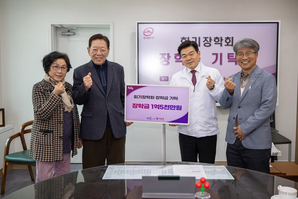 서울 동대문구(구청장 이필형)는 26일 구청장실에서 회기장학회(이사장 박정철)로부터 지역 인재 양성을 위한 장학금 1억 5,000만원을 기탁받았다고 밝혔다.