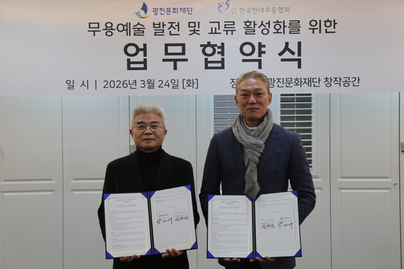 이번 협약은 무용예술 발전 및 교류 활성화를 위해 마련됐으며, 광진문화재단과 한국현대무용협회는 각 기관이 보유한 전문성과 네트워크를 바탕으로 광진구 문화예술 발전을 위한 공동사업을 추진할 것을 합의했다.