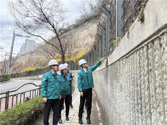 서울 동대문구(구청장 이필형)는 해빙기를 맞아 지반 약화로 인한 시설물 전도, 낙석 등 안전사고를 예방하기 위해 옹벽 및 급경사지 등 안전취약시설에 대한 민·관 합동 현장점검을 실시하고 있다.
