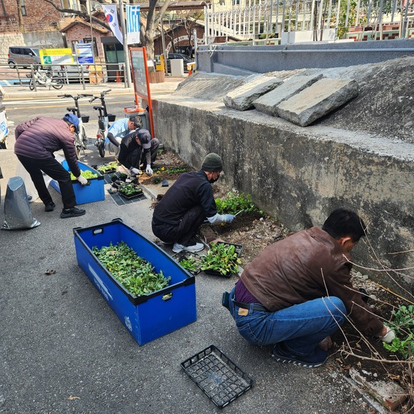 성북동, 봄맞이 거리 정비·꽃 식재로 쾌적한 마을 조성(꽃 식재). 사진=성북구청