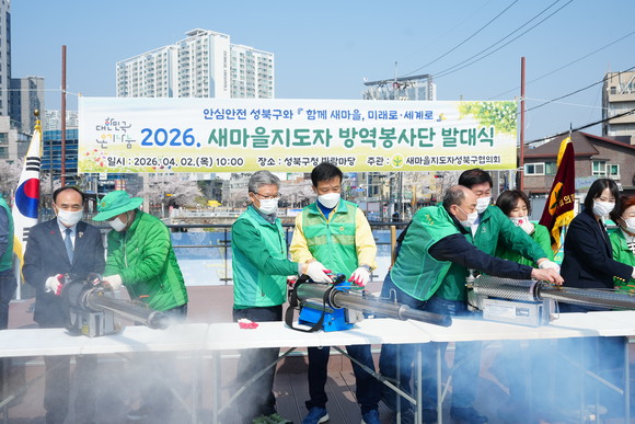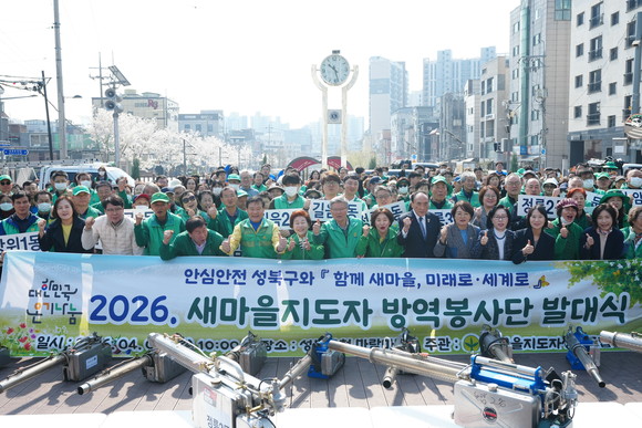새마을지도자 성북구협의회(회장 류복수)가 2026년 4월 2일 오전 10시 성북구청 바람마당에서 여름철 급증하는 모기, 파리 등 위생 해충으로 인한 매개 감염병을 선제적으로 예방하기 위하여 ‘2026년 새마을 방역봉사대 발대식’을 개최하고, 하절기 집중 방역 활동에 본격 돌입했다고 밝혔다.