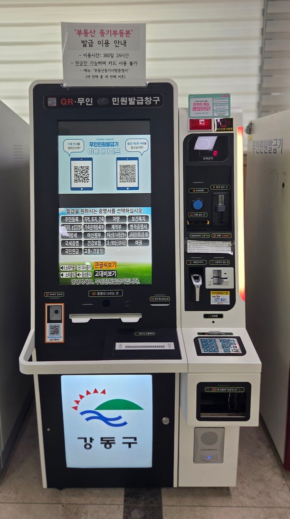 강동구청 민원실 내 무인민원발급기. 사진=강동구청