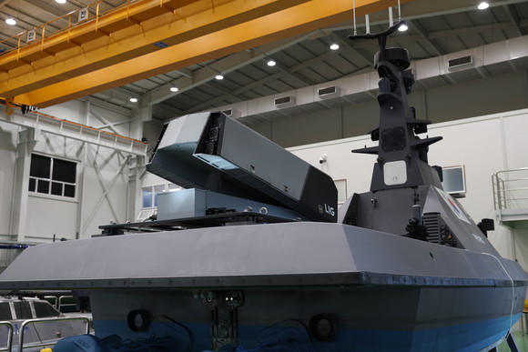 LIG D&A의 무인수상정 ‘해검-II’에 탑재된 비궁 발사대 모습. 사진=LIG D&A