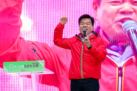 2026 트로트  x 봄꽃축제 축사하는 이필형동대문구청장. 사진=동대문구청