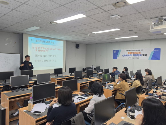 교육은 팀장이 알아야 할 통합사례관리 개념과 슈퍼비전 요령을 중심으로 사례관리 슈퍼바이저의 역할 이해에 초점을 맞췄다. 실제 사례를 통해 사례관리 수행 과정에서 팀원의 업무를 지원하고 보호·지지하는 방법을 다루며 팀장의 역할을 강조했다.