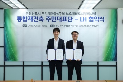 LH는 지난달 26일과 이달 8일 양일에 걸쳐 성남분당 노후계획도시정비사업의 공공시행방식 추진을 목표로 까치마을4구역과 무지개마을4구역 통합 재건축 주민대표단과 각각 업무협약을 체결했다.