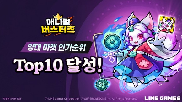 라인게임즈(공동대표 박성민, 조동현)는 개발 관계사 슈퍼어썸(대표 조동현)이 개발하고 자사가 서비스하는 모바일 캐주얼 방치형 RPG ‘애니멀 버스터즈(Animal Busters)’가 출시 초반 양대 마켓 인기 순위권에 진입했다고 10일 밝혔다.