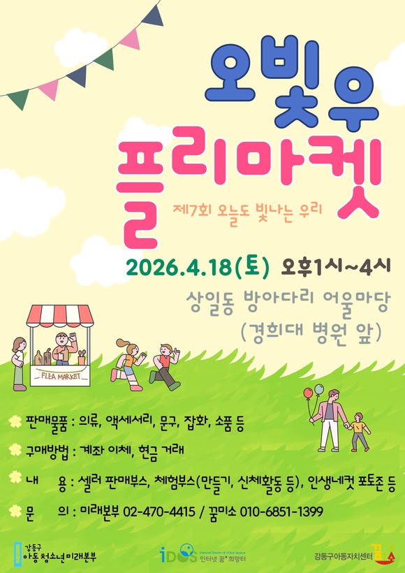 올해로 7회째를 맞는 이 축제는 강동구의 아이들이 직접 기획하는 행사로, 매년 다양한 체험 활동을 통해 아이들에게 큰 호응을 얻어왔다. 올해는 '플리 마켓'을 주제로 오후 1시부터 4시까지 진행되며, 아이들이 직접 만든 물품이나 중고물품을 11개 부스에서 판매한다. 수익금은 판매에 참여한 아이들이 직접 갖도록 해 경제관념을 키울 수 있는 기회도 함께 마련했다.