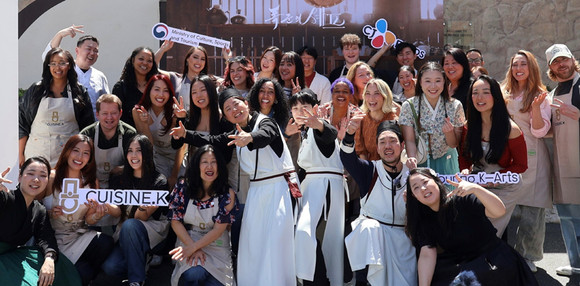 지난 4일 미국 LA에서 열린 CJ제일제당 ‘K-쿠킹 클래스 바이 퀴진케이’ 참가자들이 단체 사진을 찍고 있다. 사진=CJ제일제당